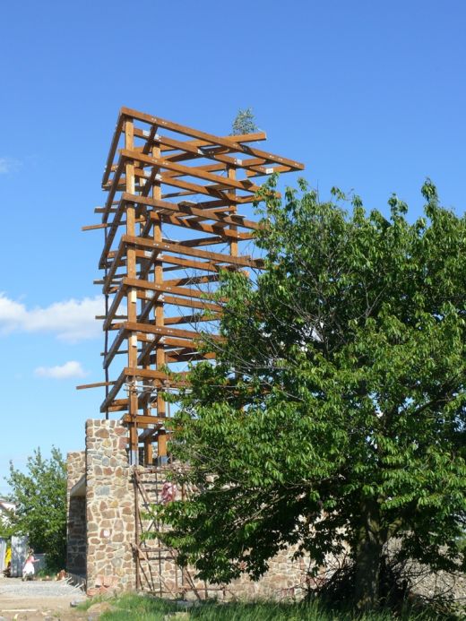 Po dlouhé debatě se zastupitelstvo rozhodlo pro návrh pana ing. architekta Karla Zusky s půdorysem trojúhelníku. Poté bylo vypsáno výběrové řízení na zhotovitele stavby - zde zvítězila firma ESTA Kladno s.r.o. Vlastní výstavba rozhledny se uskutečnila od srpna 2008 do září 2009.